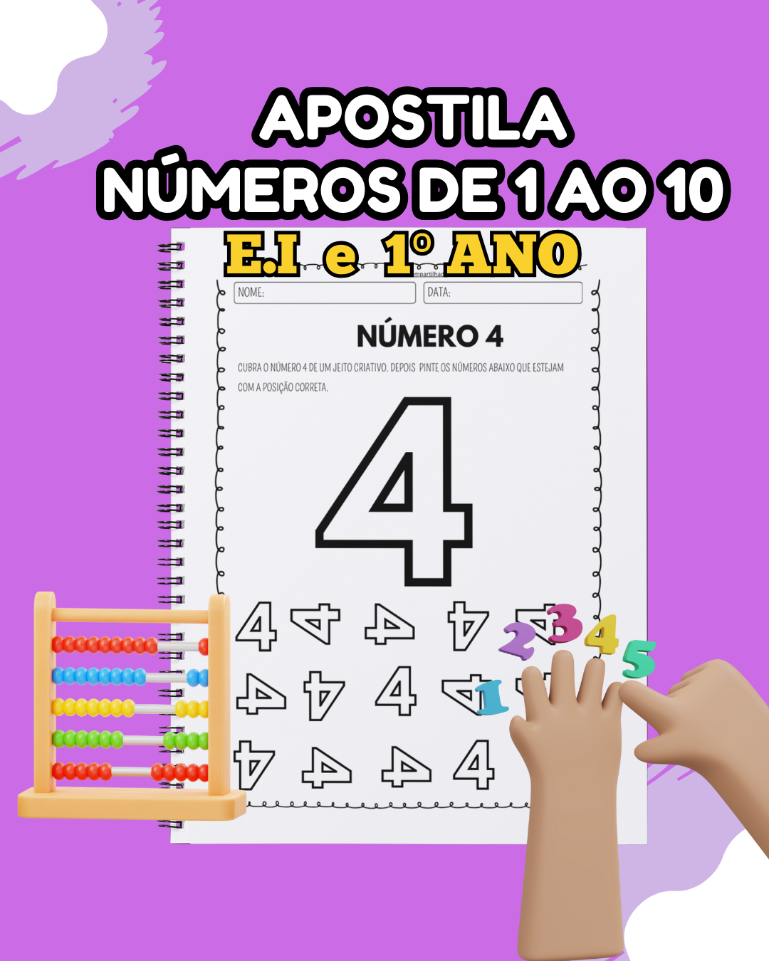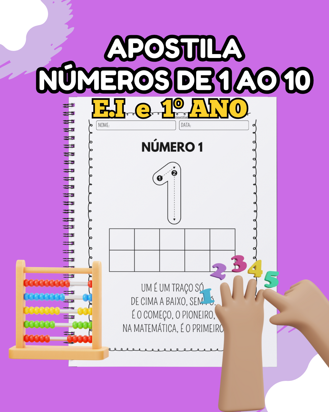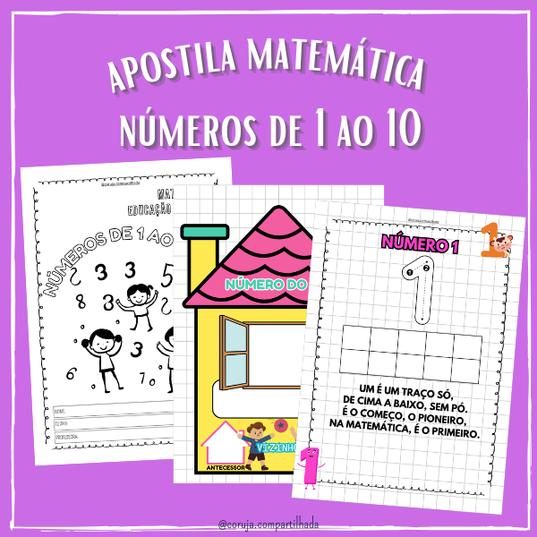 Descrição: Descubra a melhor forma de ensinar matemática para as crianças! Nossa Apostila de Matemática – Números de 1 a 10 é perfeita para a educação infantil, reforço escolar e início da alfabetização.