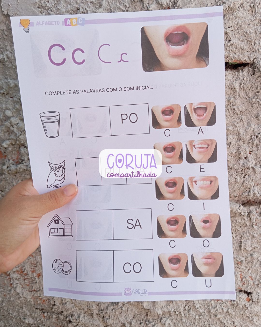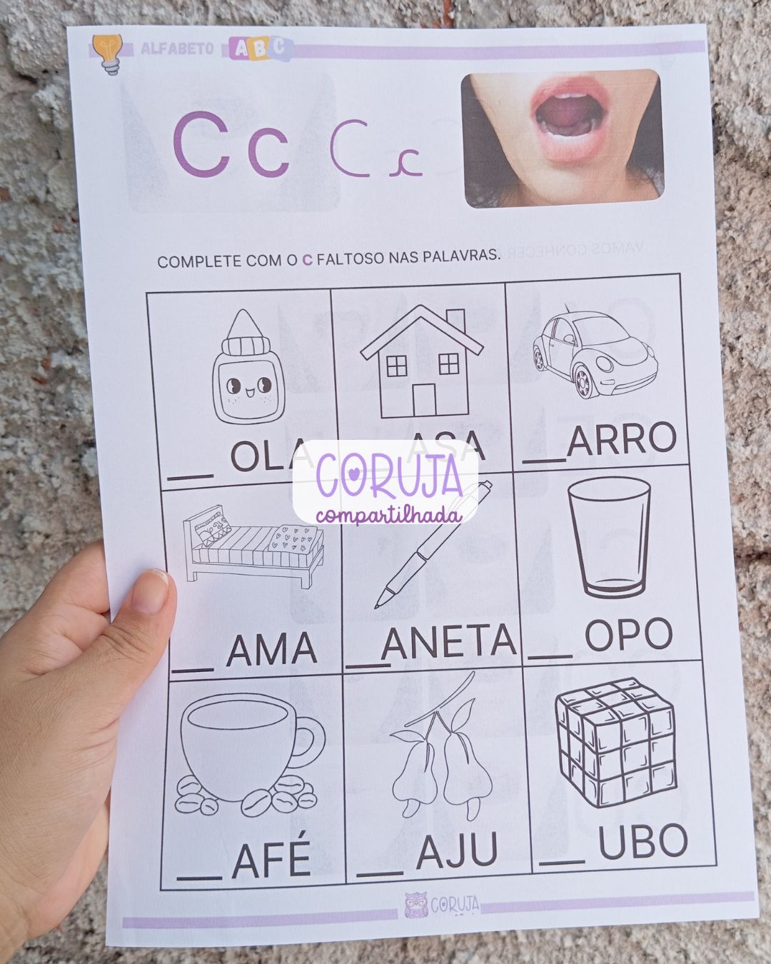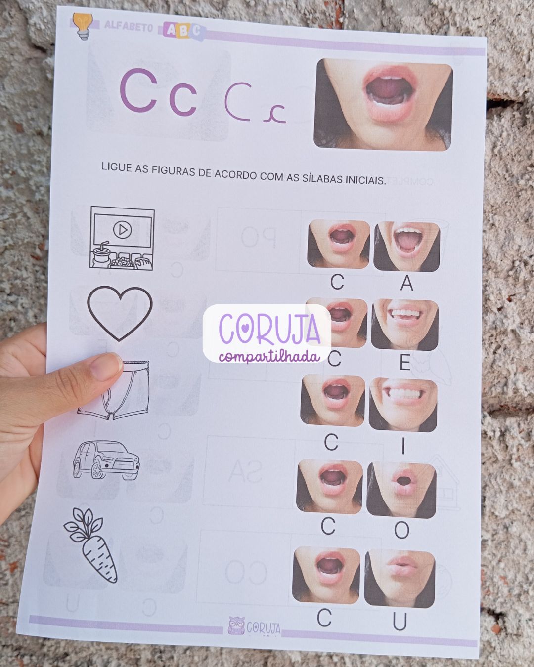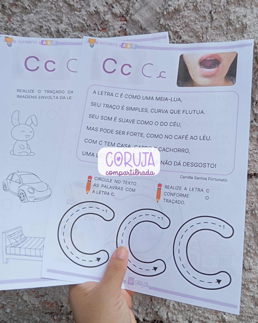 Além disso, o material proporciona uma introdução à família silábica da letra C, fortalecendo a consciência fonêmica e contribuindo para o desenvolvimento da leitura e da escrita de forma gradual e estruturada.