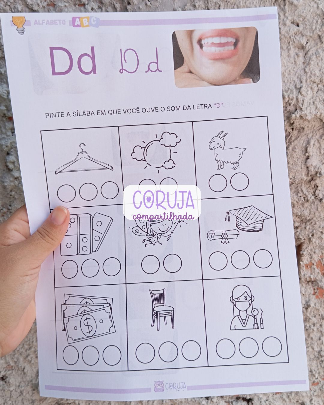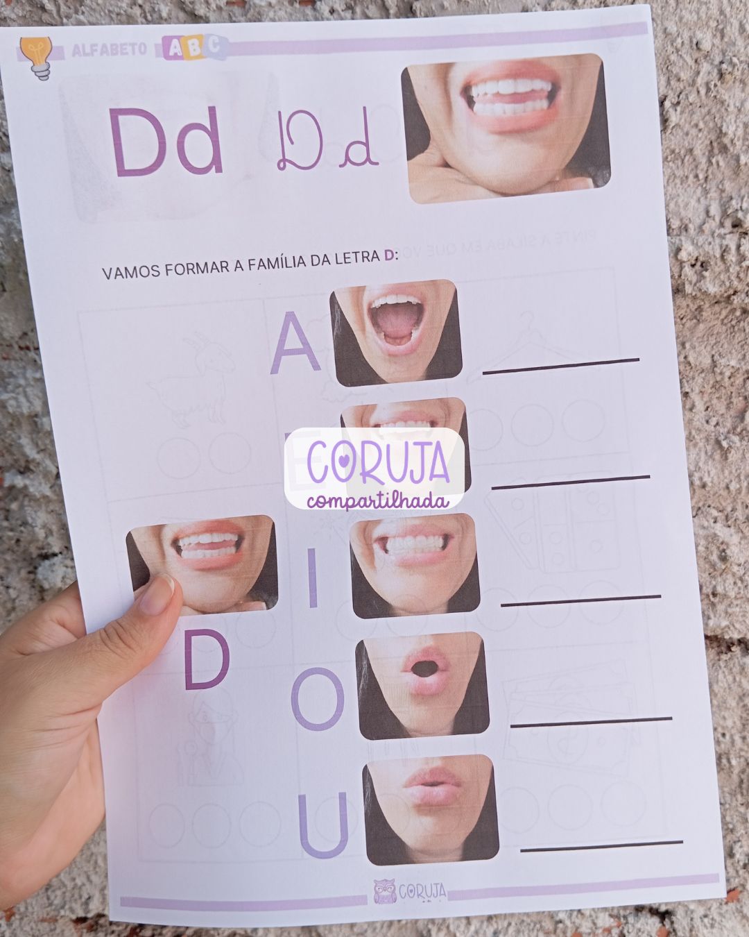 Além disso, o material proporciona uma introdução à família silábica da letra D, fortalecendo a consciência fonêmica e contribuindo para o desenvolvimento da leitura e da escrita de forma gradual e estruturada.