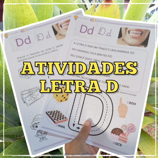 A Sequência Didática da Letra D foi desenvolvida para auxiliar as crianças no reconhecimento do som, traçado e identificação de palavras que iniciam com a letra D, promovendo uma aprendizagem significativa e alinhada ao processo de alfabetização.