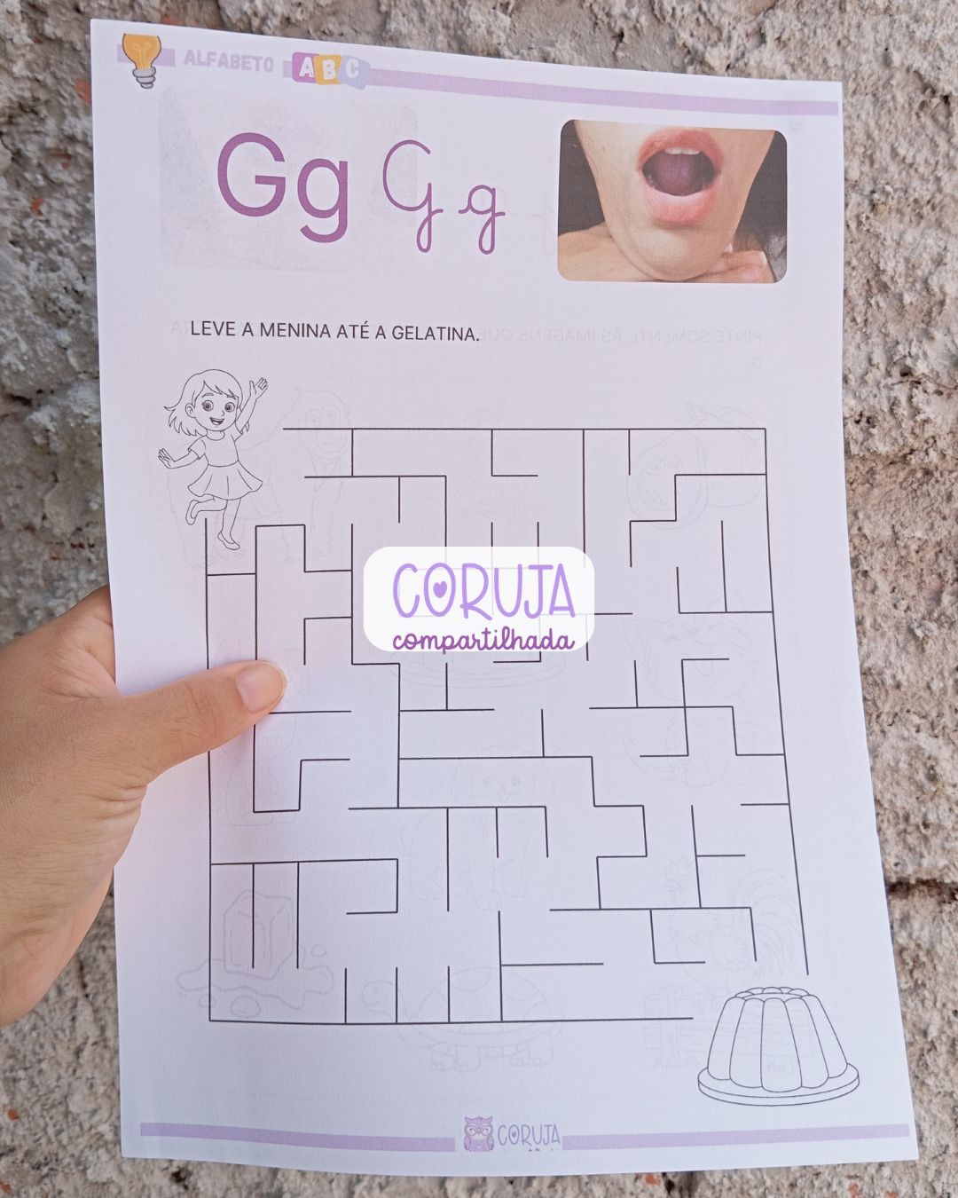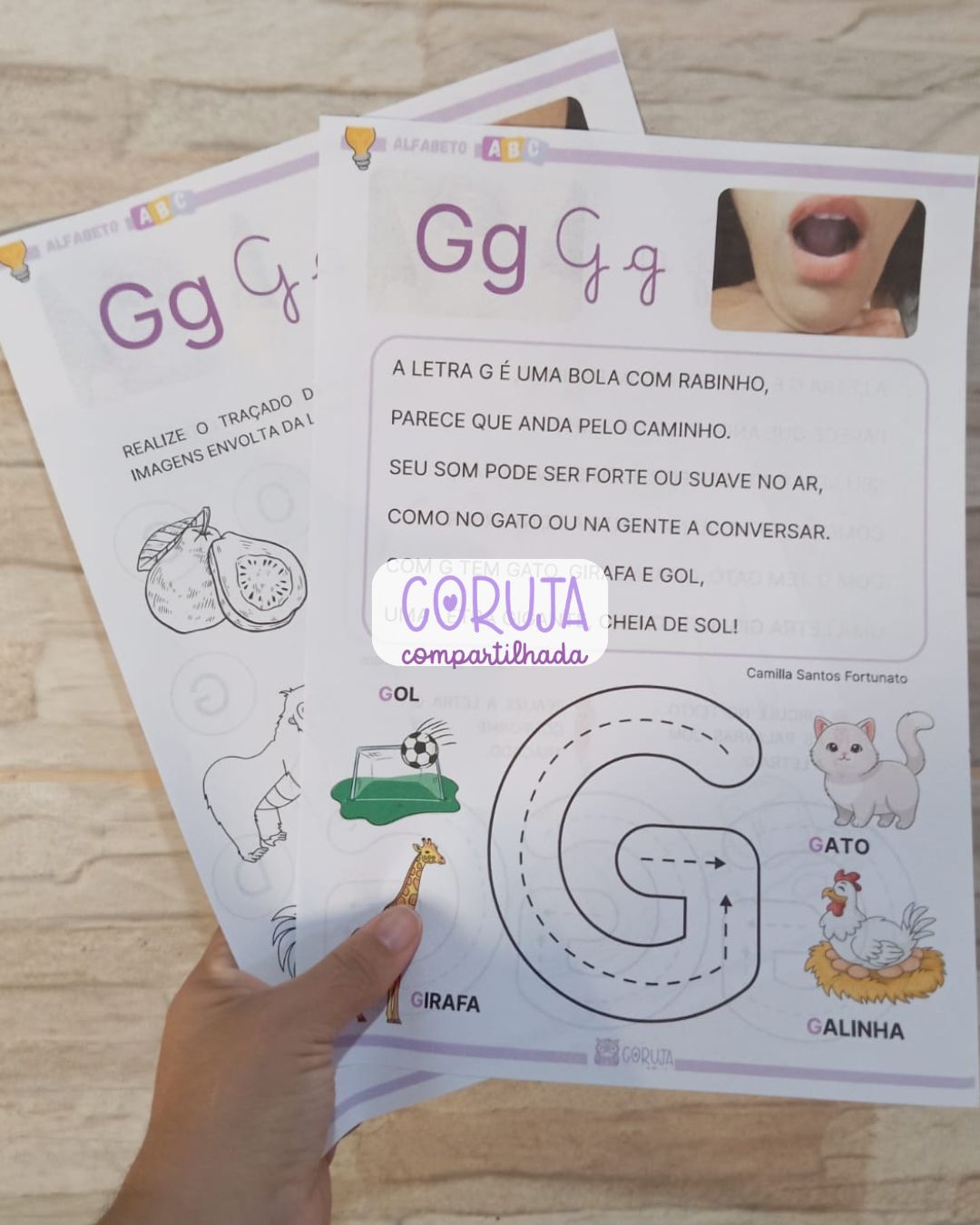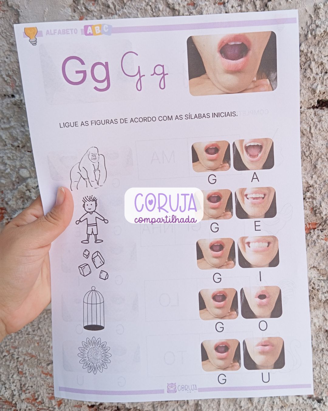 Além disso, o material proporciona uma introdução à família silábica da letra G, fortalecendo a consciência fonêmica e contribuindo para o desenvolvimento da leitura e da escrita de forma gradual e estruturada.