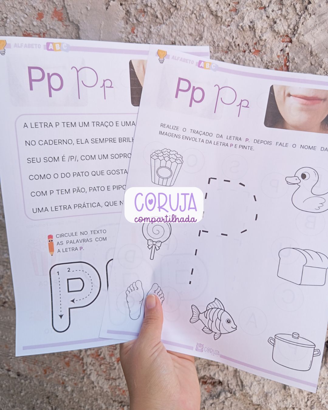 Ideal para professores que desejam trabalhar a letra P de maneira completa, organizada e prática em sala de aula. Indicado para: Educação Infantil (Infantil 5) • Turmas de alfabetização • Sala de recursos e apoio • Reforço escolar.