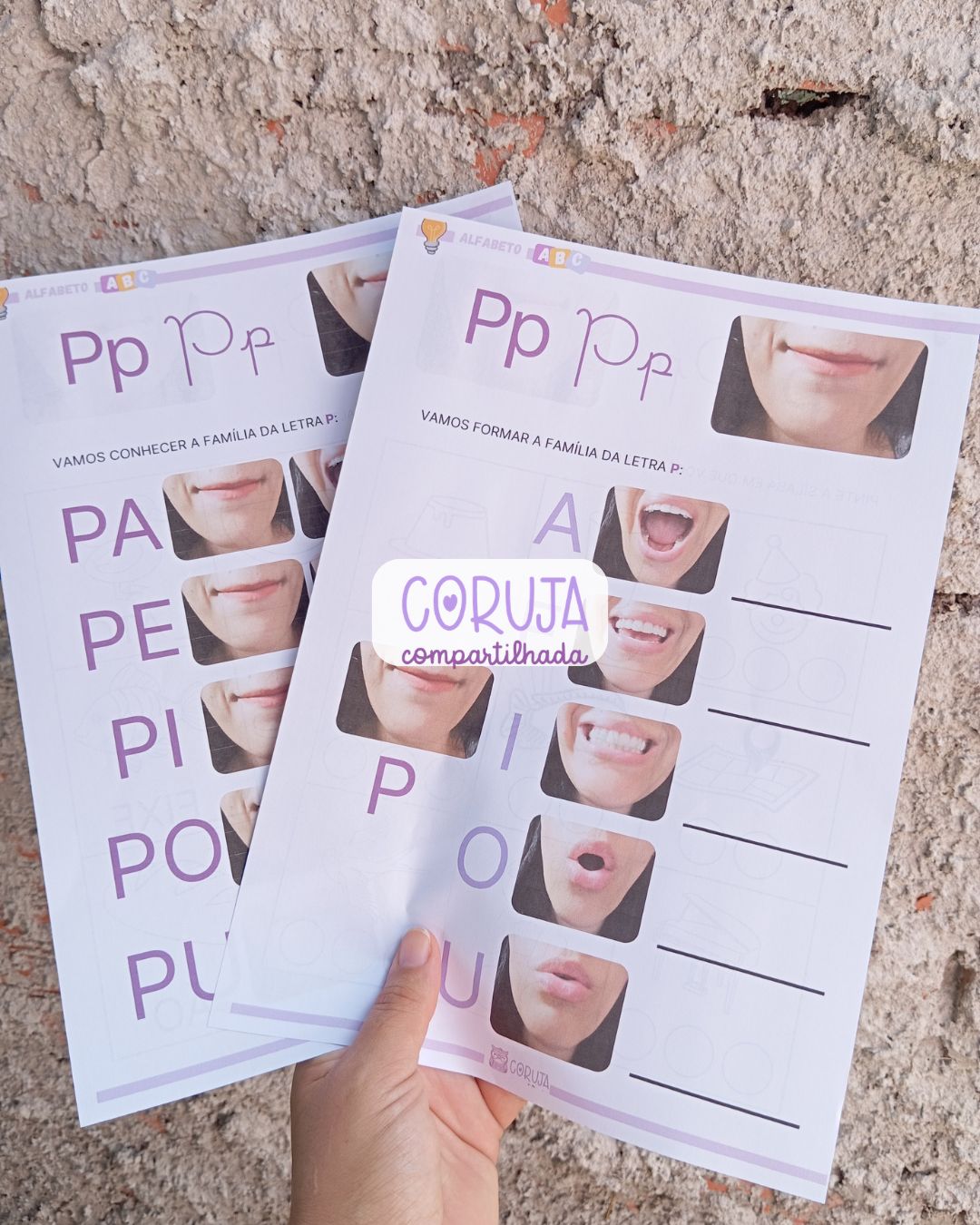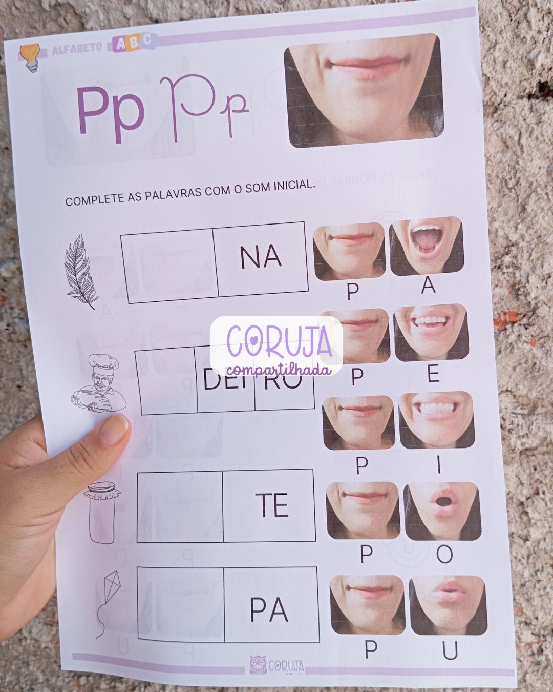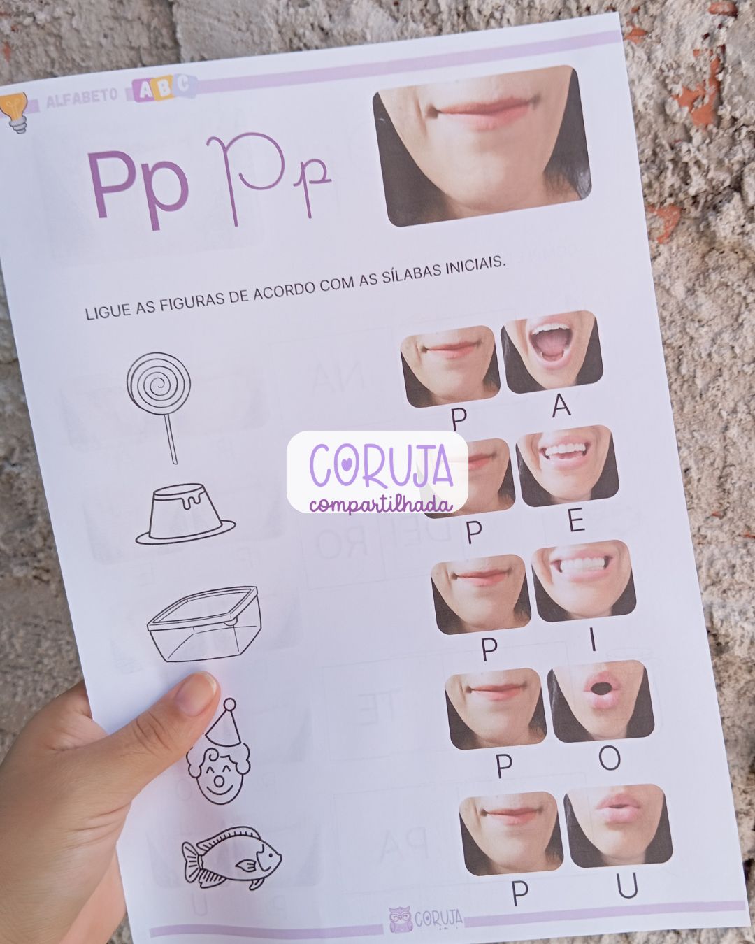 Além disso, o material proporciona uma introdução à família silábica da letra P, fortalecendo a consciência fonêmica e contribuindo para o desenvolvimento da leitura e da escrita de forma gradual e estruturada.