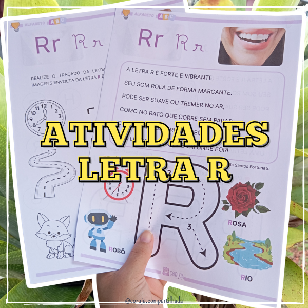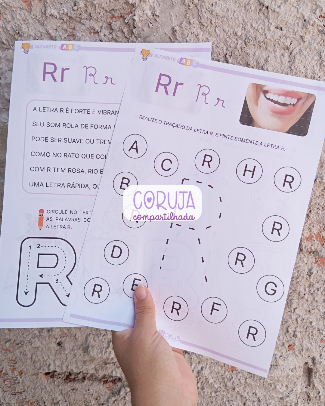 Ideal para professores que desejam trabalhar a letra R de maneira completa, organizada e prática em sala de aula. Indicado para: Educação Infantil (Infantil 5) • Turmas de alfabetização • Sala de recursos e apoio • Reforço escolar.