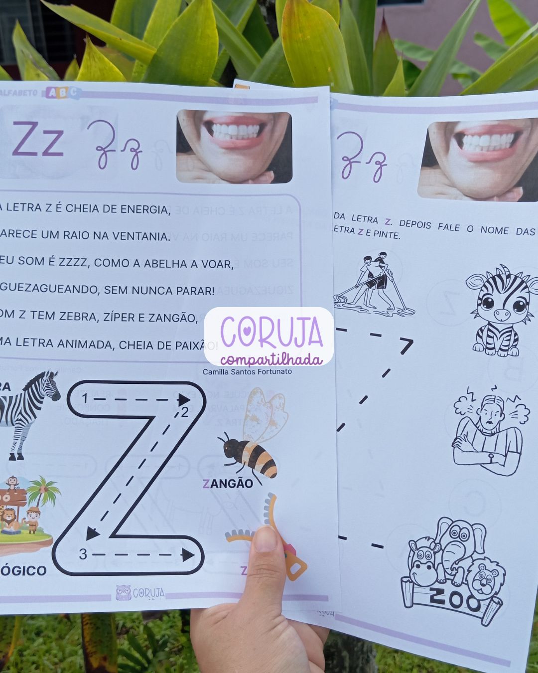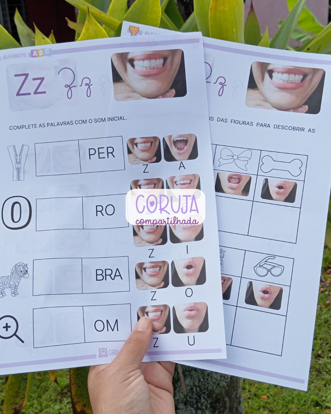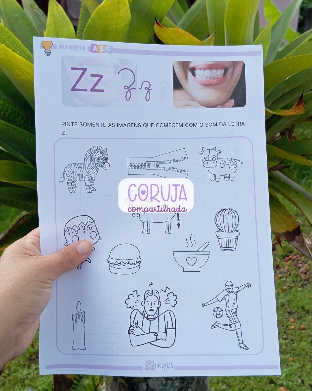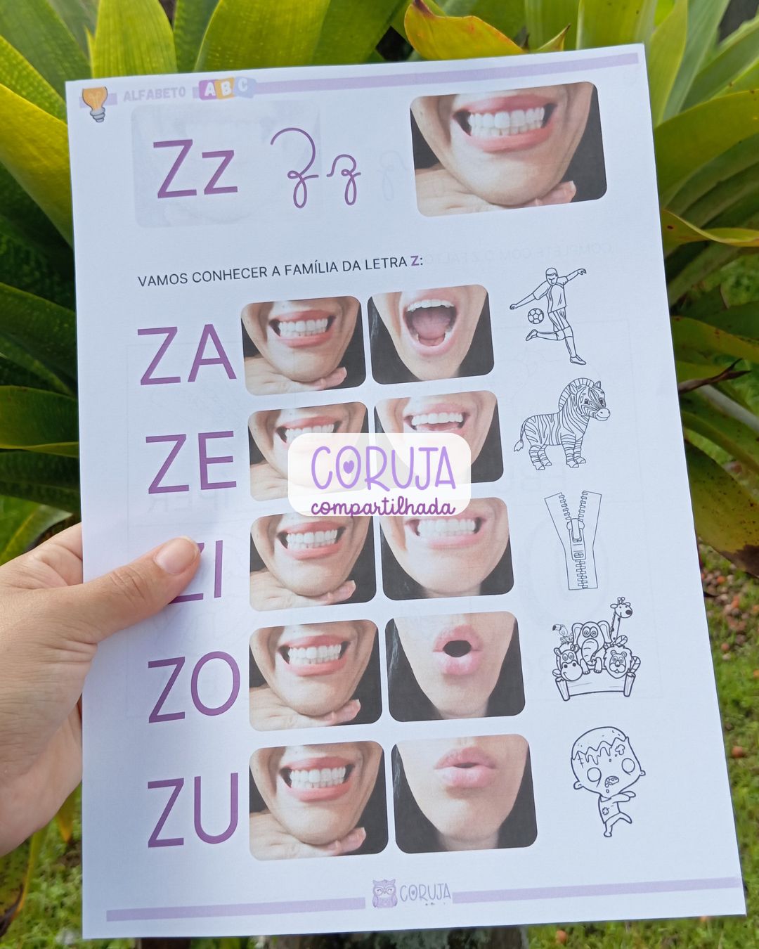 Além disso, o material proporciona uma introdução à família silábica da letra Z, fortalecendo a consciência fonêmica e contribuindo para o desenvolvimento da leitura e da escrita de forma gradual e estruturada.