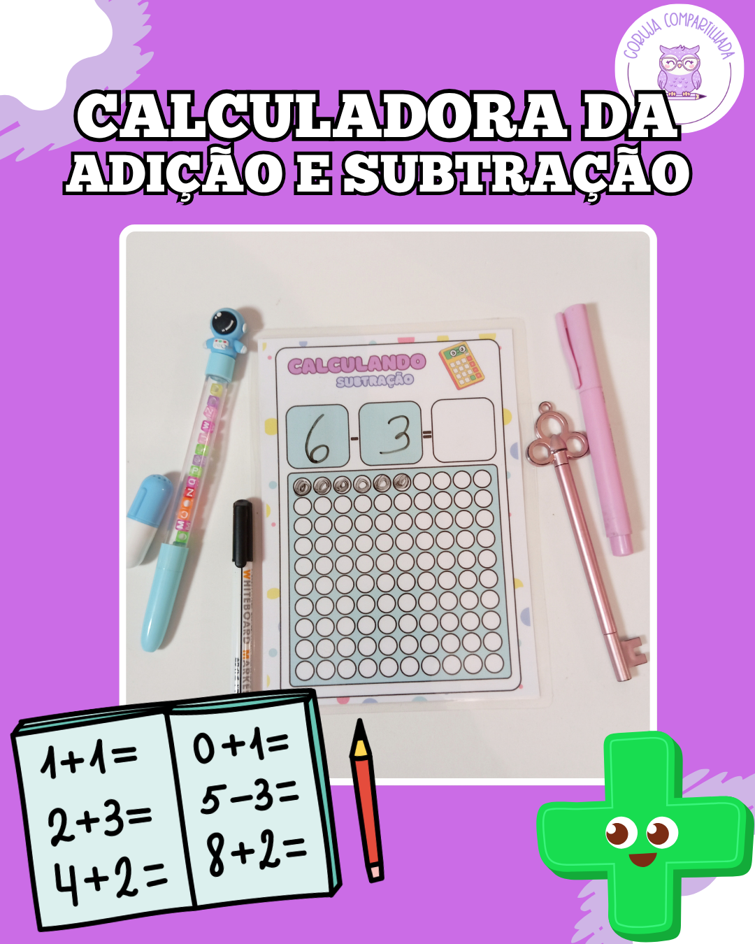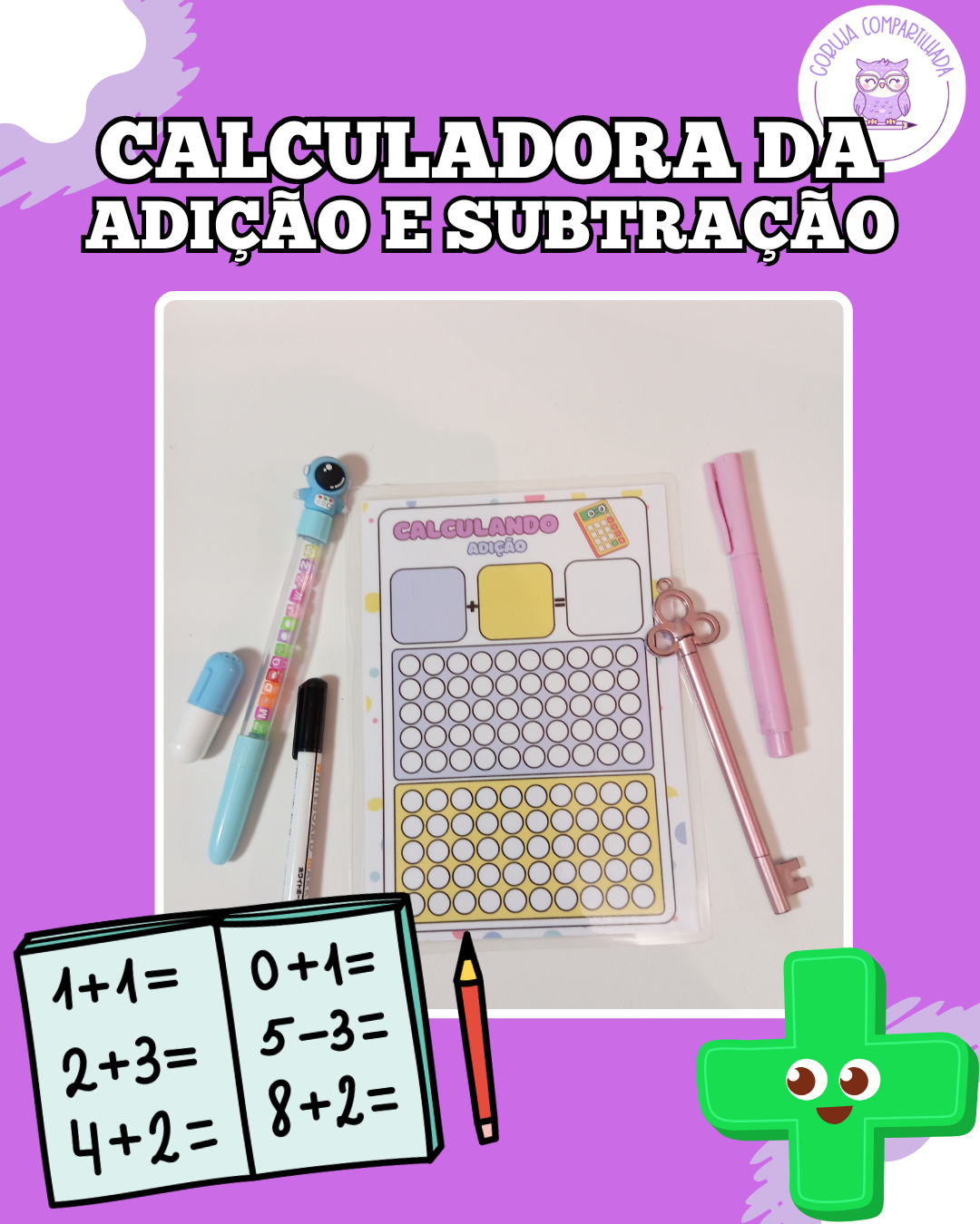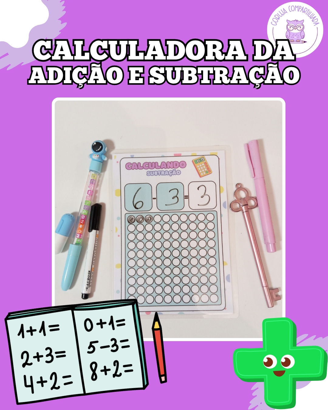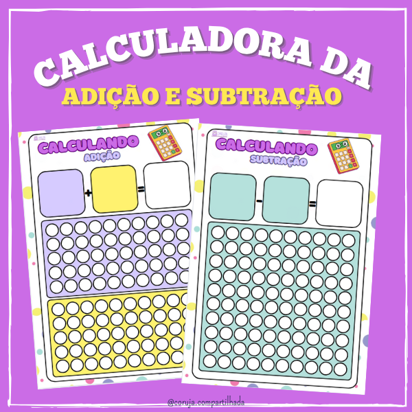 A Calculadora da Adição e Subtração é um material visual, colorido e lúdico, criado para mostrar de forma concreta o que significa somar, juntar, tirar e perder — facilitando o entendimento das operações de forma simples e prática.