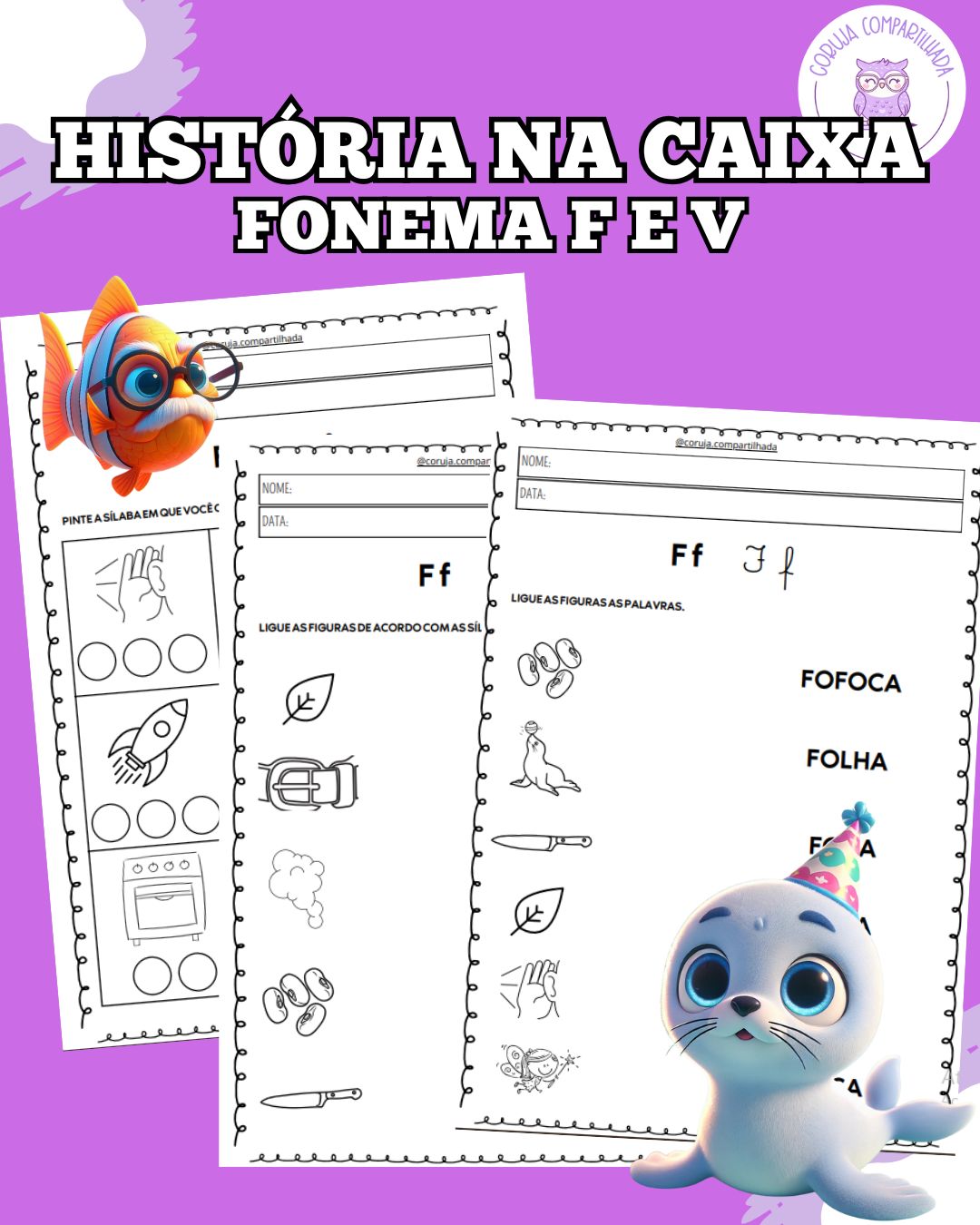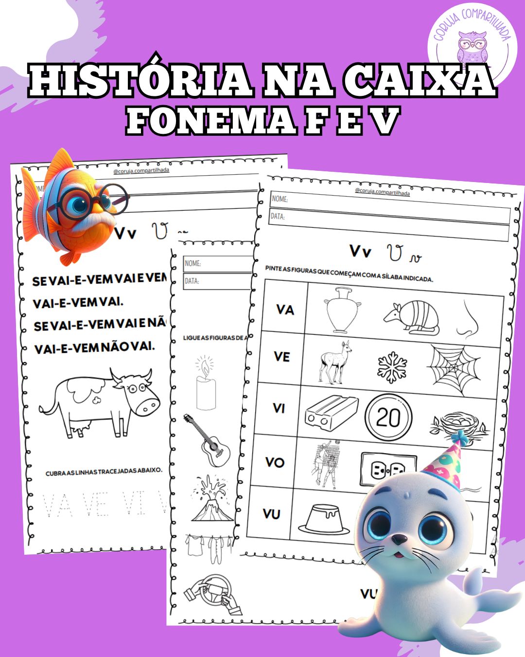 História na caixa – letra F e V + atividades + recursos pedagógicos